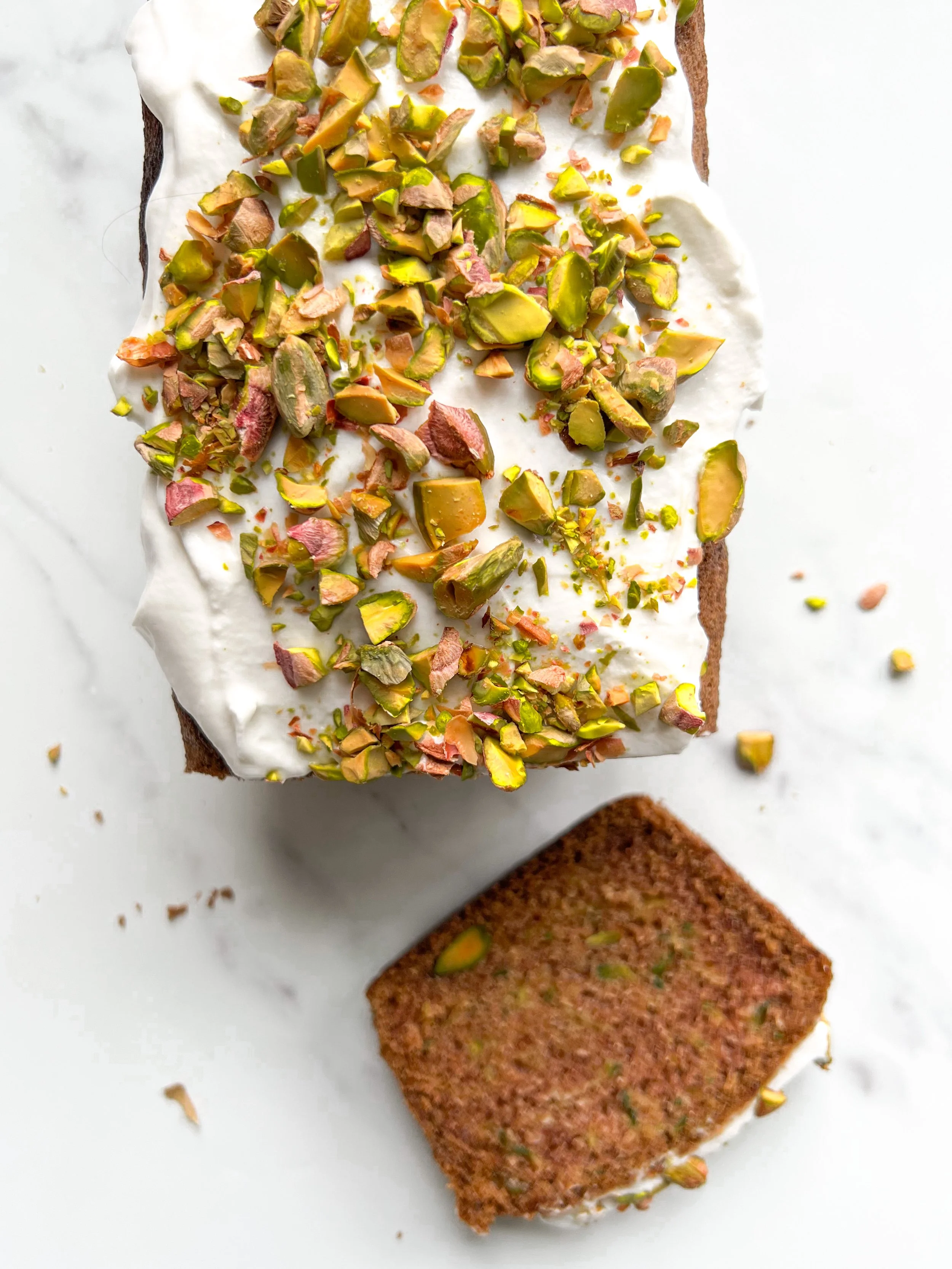 Allow to cool and cover with coconut yoghurt and chopped pistachios.